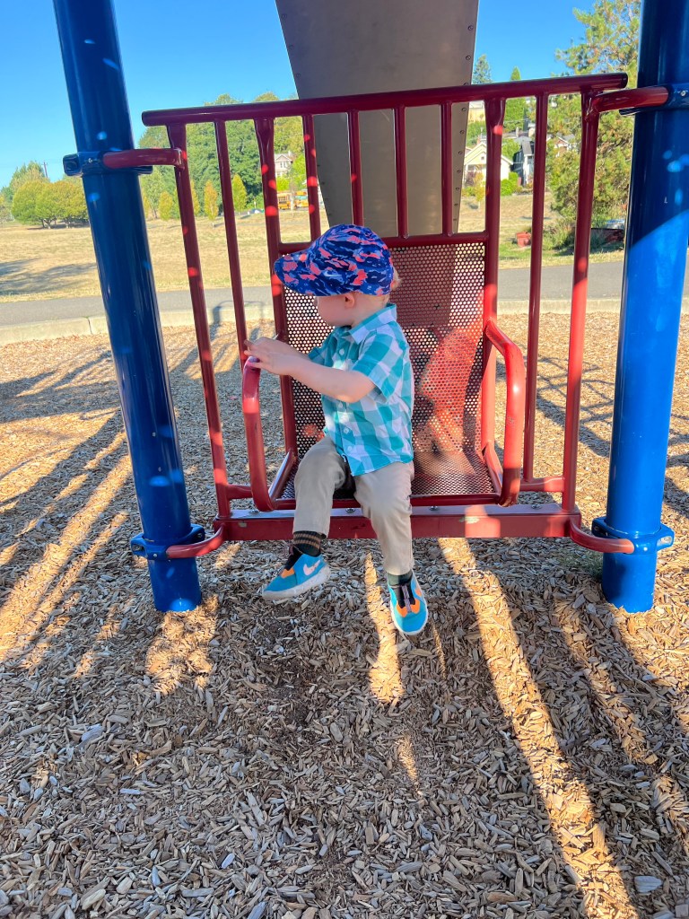 We’ve been enjoying a period of increased anxiety. Back in June he became suddenly and extremely afraid of taking a bath, so we started giving him sponge baths because we didn’t want to force him into the bath and make the whole thing even worse. That was months ago, though, and the sponge baths weren’t a great time for anyone either, and we’ve been really looking forward to getting back to regular baths. So we started filling the tub with bubbles and toys, or with balls, and I put on my swimsuit and sat in the tub, and we tried to get him to play with the water while standing outside of the tub. He was hesitant at first, but after a couple times he thought it was the greatest thing ever. It took several times before he agreed to get into the tub with me. We’ve now been doing bubblebaths with a special submarine scooping toy (found at a thrift store for $2.50!) for about two weeks and he talks all the time about how much fun we had in the bubble bath. I’ve still been sitting in the tub with him, so the next phase will be me no longer having to do that.