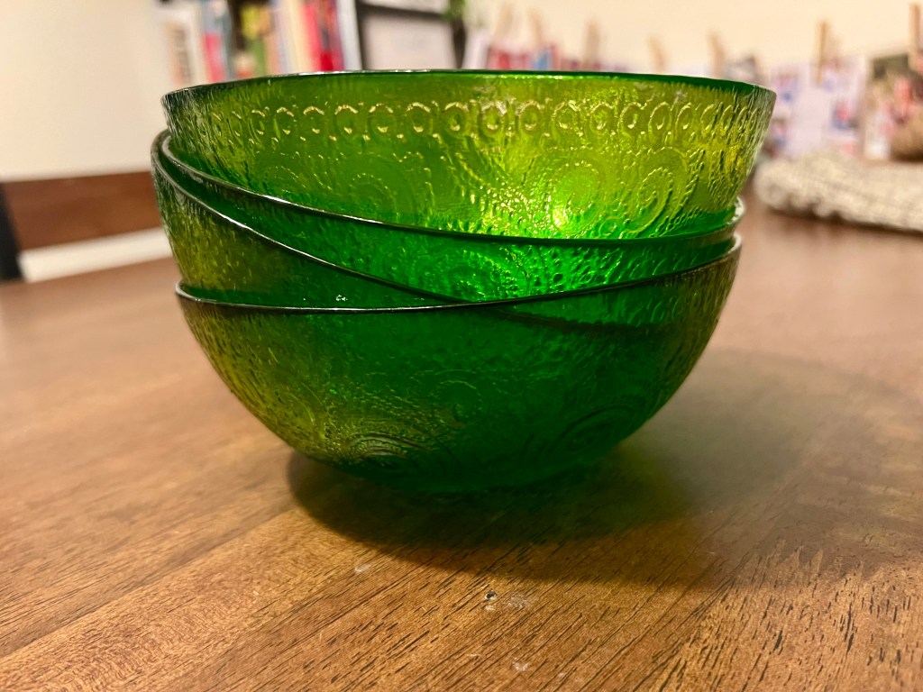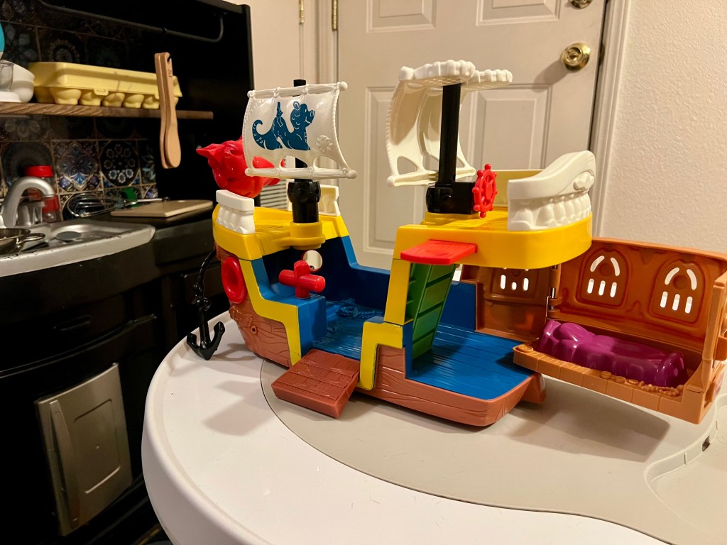 A shirt, a set of four beautiful green bowls and a pirate ship from Goodwill. $31.