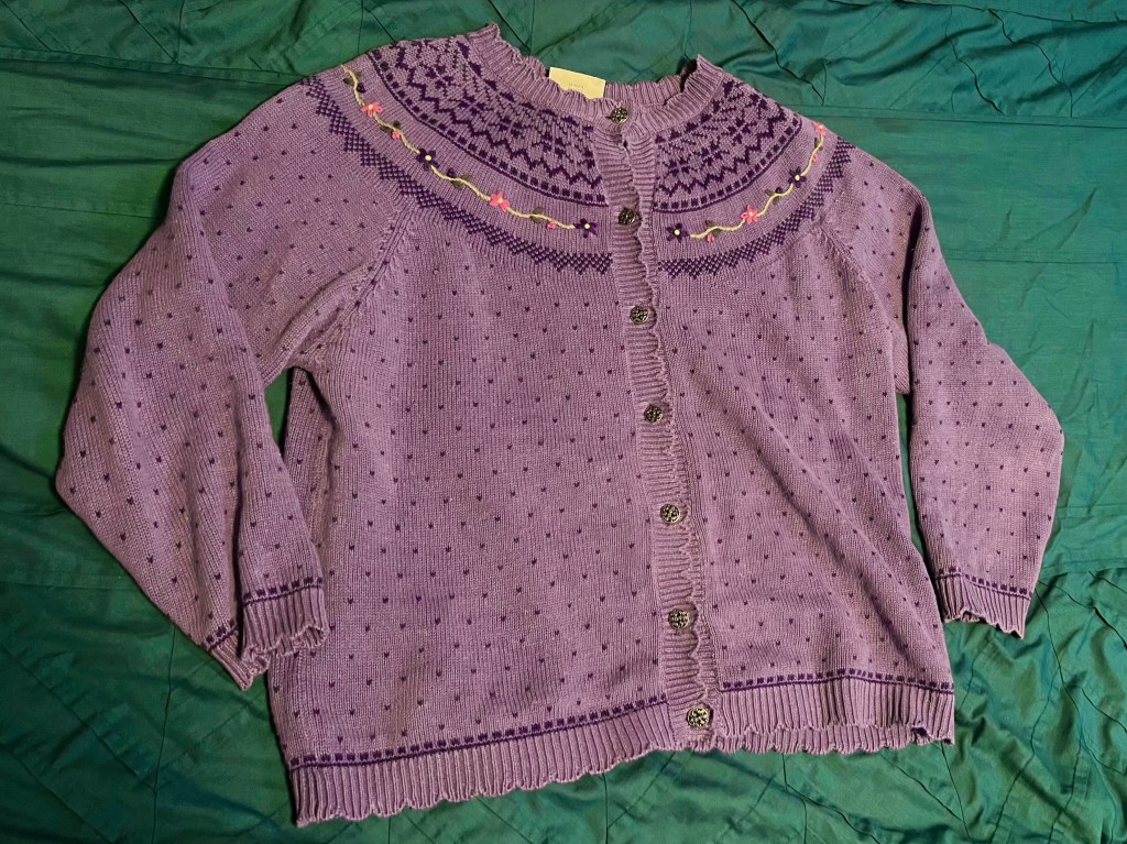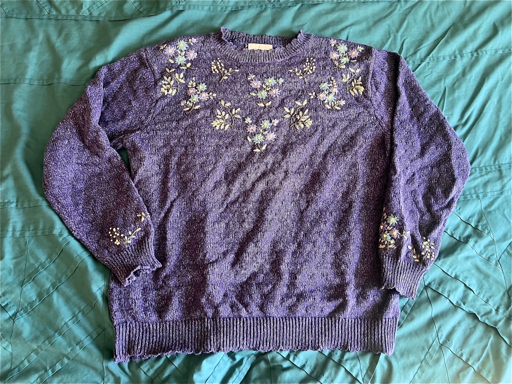 For the past few years I’ve made an effort to buy secondhand clothing instead of new whenever possible. When I do buy new, I try to stick to ethically-made clothes in natural fibers, which can be a bit pricey and they should be. A new shirt should never cost ten dollars, and few things irritate me more than seeing a review where somebody claims they didn’t get their money’s worth from a $20 sweater. Ma’am, if you put three of your fingers in that sweater one time then you got your money’s worth. Having spent the past eight months crocheting most of a sweater, something I will likely never do again, and having watched my husband knit a few sweaters, I can assure you that no sweater should cost anything close to $20 simply due to the labor that goes into it. A $20 sweater is going to be junk and it should be junk. And we shouldn’t be buying junk and supporting the constant cranking out of new junk, so please at least just know all of that if you still decide to buy the $20 sweater. Of course, the high prices of ethically made garments are not in everyone’s budget. Fortunately there’s a nearly inexhaustible supply of clothing on the secondhand market.