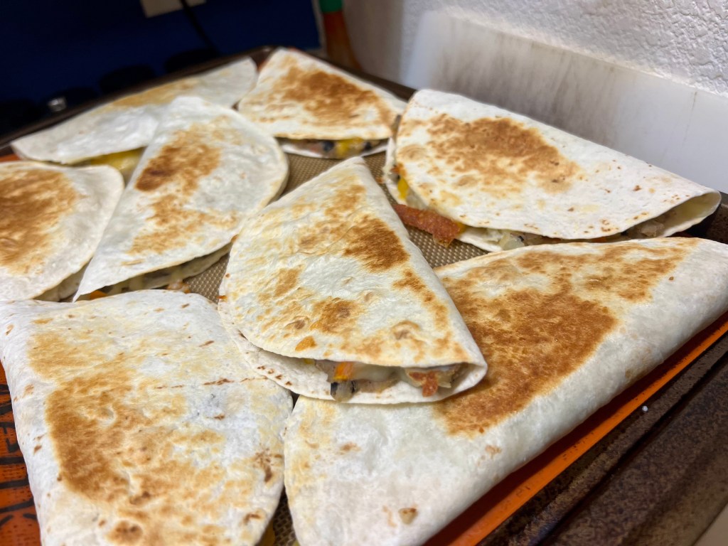 - Food prepped. I’ve been wanting to keep things really easy and I don’t mind eating the same things on repeat, so I made another batch of sweet potato and pinto bean filling to eat with corn tortillas. I actually eat this for breakfast with a green vegetable (this week collard greens I’ve been stashing in the freezer), and I eat oatmeal for lunch. For me, eating some veggies first thing in the morning feels like the best start to the day, and then lunch feels like dessert which is also fun. People look at me like I’m a goddamn pervert when they see me doing this, though, which is wild. Anyway, I also made big batches of blueberry pancakes and quesadillas (potato, bell pepper, black bean and cheese) to keep in the freezer for the kid.