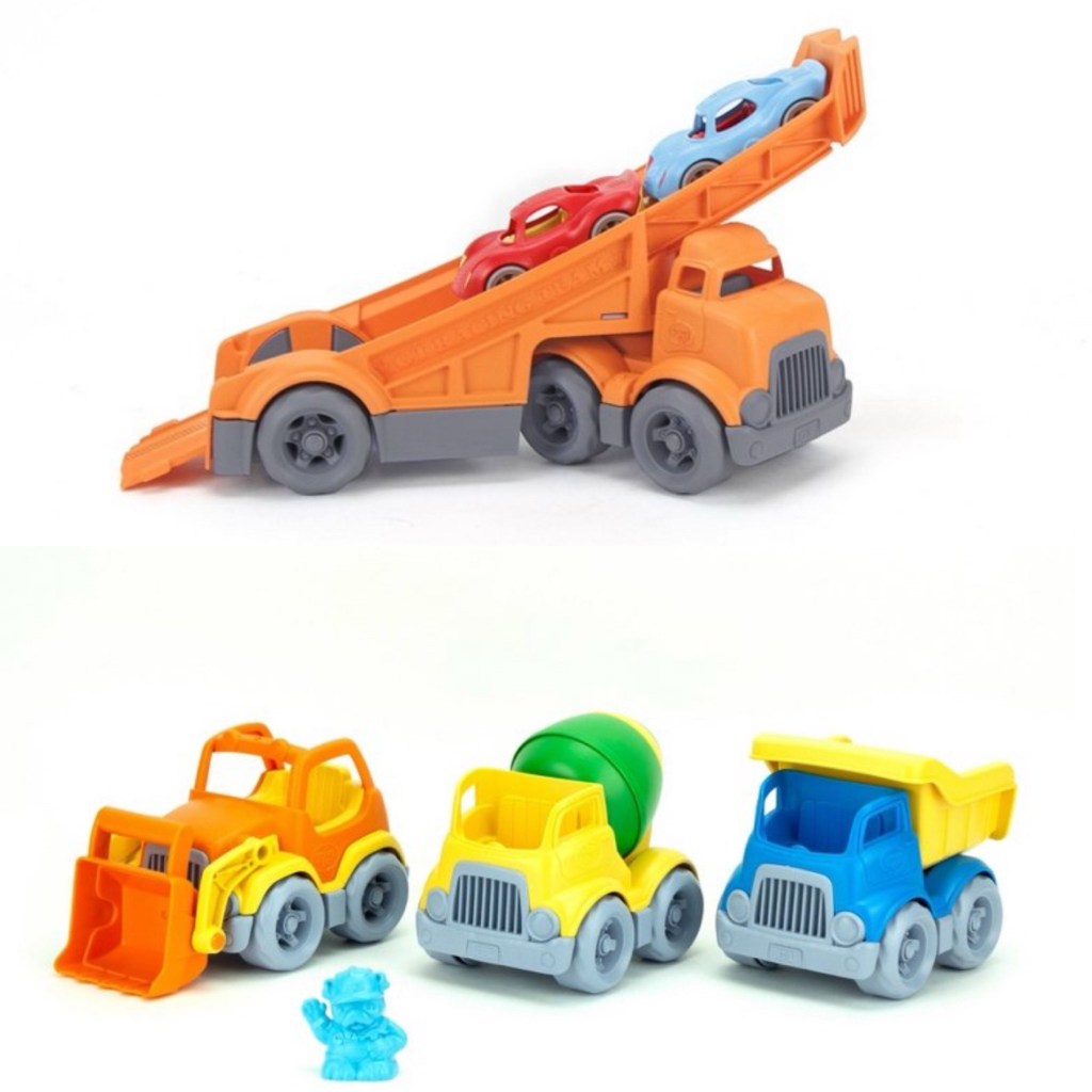 I bought these new from Target during a sale, using a gift card. They’re Green Toys, a brand I don’t mind buying new because they’re made entirely out of recycled plastic. I broke out the cement mixer truck a couple weeks ago, but the rest are going to wait until a time we REALLY need a new toy to come out – another heat wave when it’s too hot to leave the house, an illness, etc.