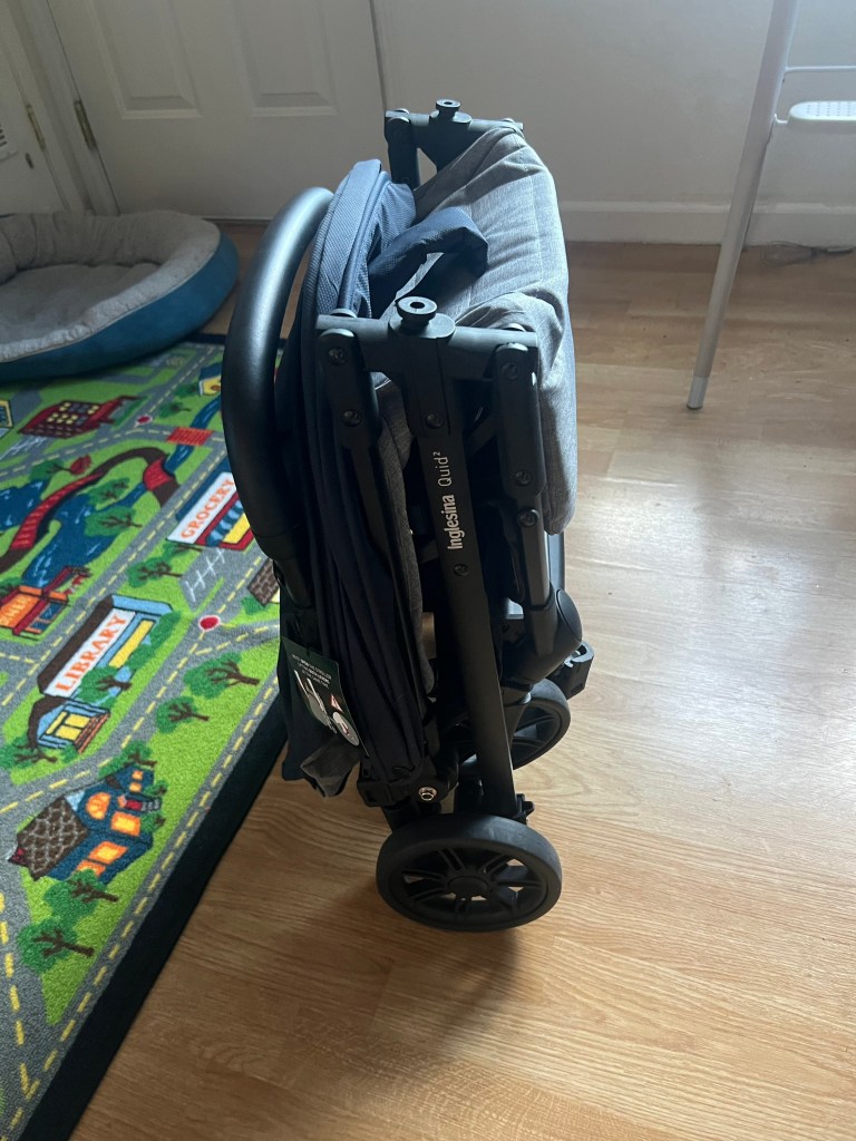 We had been interested in buying a more comfortable (for us and Boo) compact stroller than the umbrella stroller we’ve been keeping in the car, which I also bought used at some point for like $8. We ended up buying a compact travel stroller from a retailer that sells open-box items for kids – floor models, returns, etc. They inspect all their items to make sure they’re undamaged, although some may show some superficial signs of use. This is the Inglesina Quid, the exact stroller I wanted after researching options. It retails for $300 and I bought it for $140, tax and shipping included. This particular unit had been purchased from Amazon and returned (it arrived in a very taped-up Amazon box) and it was obvious it had never even been removed from the packaging. People just be buying shit from Amazon, returning it and not giving a single thought to where it ends up. It’s worse with fashion, because there’s no secondhand market of people seeking out those items – it basically just becomes garbage. Anyway, the stroller folds up small enough to fit in an airplane overhead bin, it weighs only 13 pounds and Boo seems to find it very comfortable.