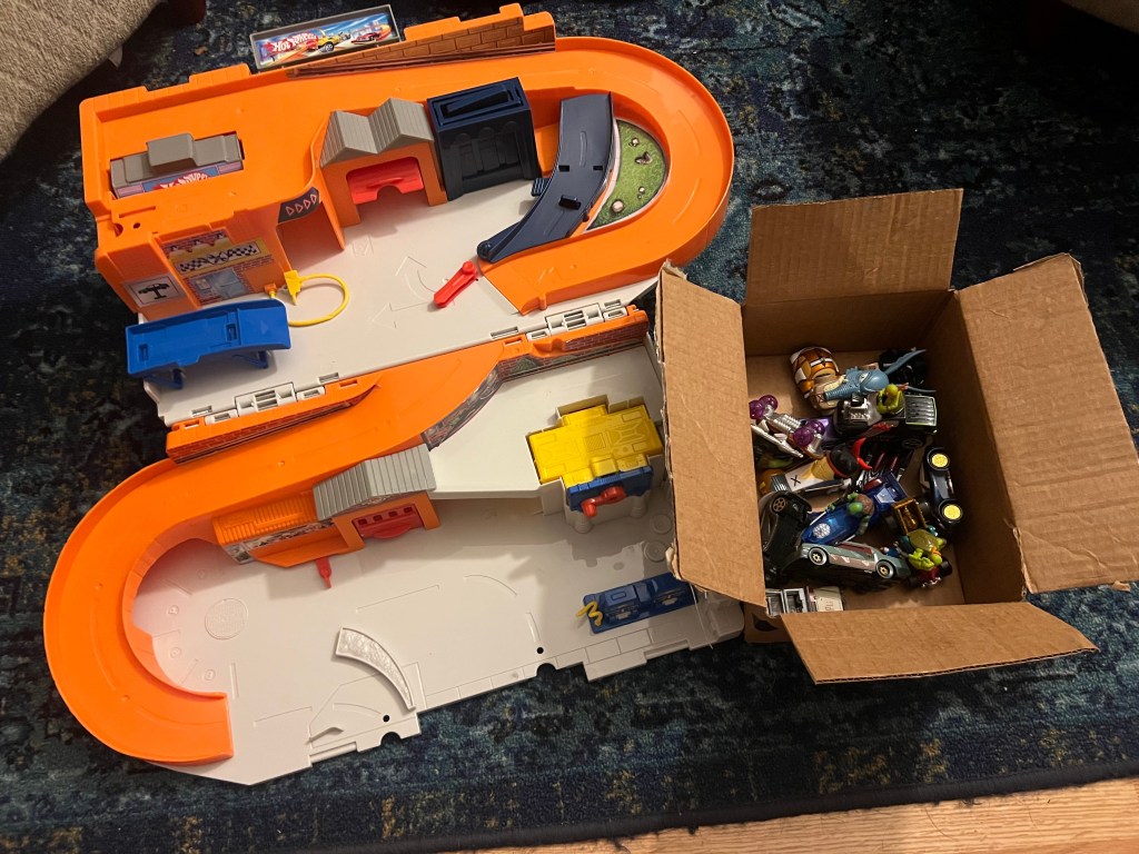 Boo loves cars, and I was interested in getting him something like Hot Wheels car tracks but didn’t want a bunch of pieces getting lost. This old Hot Wheels Sto & Go set folds up into itself with a carry handle, and because it’s all one piece, nothing can get lost. I’m pretty sure we had this same toy at my house when I was a kid. It came with a box of cars, too. This will also be a Christmas or birthday gift. I bought it on Mercari for $41.88 (again, shipping) but I actually bought this entirely with a balance I had from selling things there. Looks like Hot Wheels has a new, similar-looking version selling for $42, so I didn’t actually save money on this, but I still prefer giving already-existing toys another home to driving the production of more non-biodegradable toys when possible.