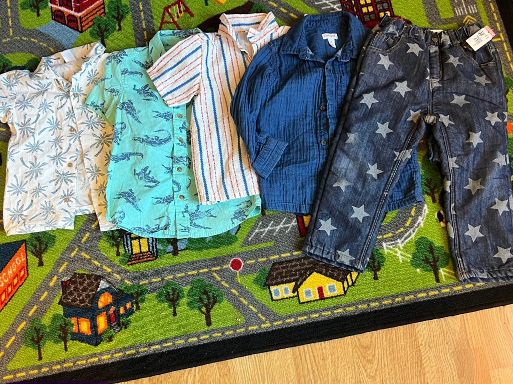 These all came from the same trip to Good Will as the toy excavator. The star jeans are fleece-lined and will be good for really cold days. I think this all cost about $18.