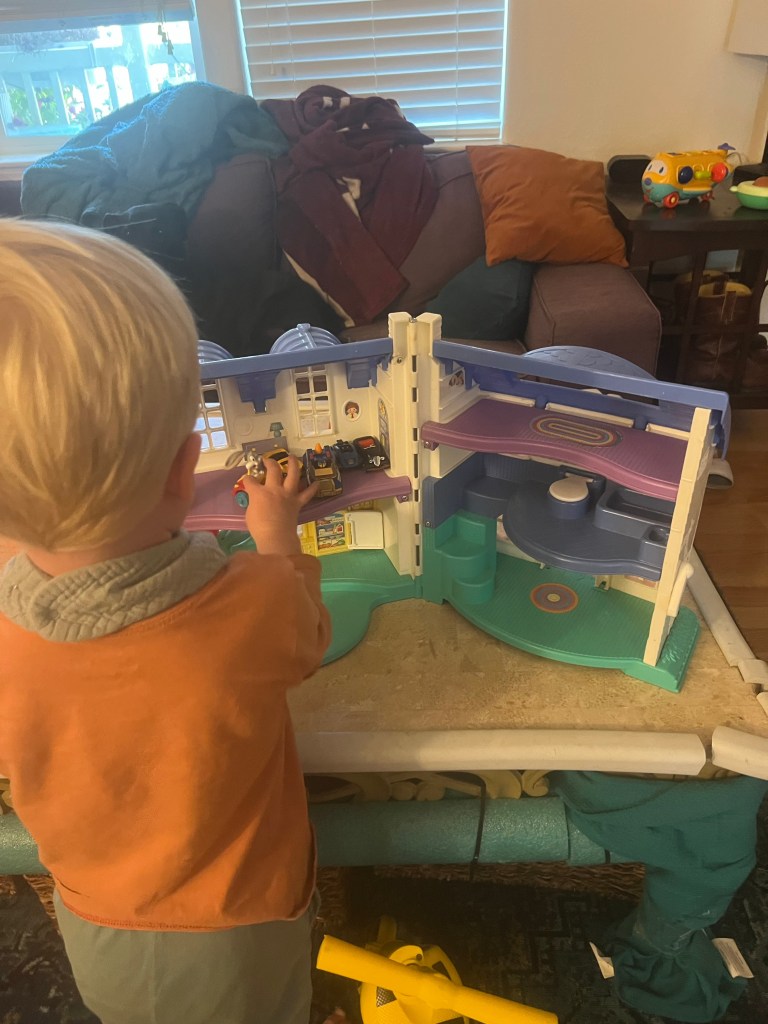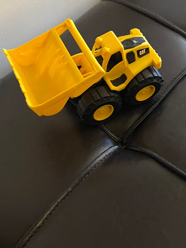 This little toy excavator came from Good Will for $1.99. When I take Boo to Good Will I usually find something for him to hold onto while he’s in the cart so he’s less fussy while I’m looking at things. Sometimes I buy the toy, sometimes I just put it back when we’re done. This one I bought.